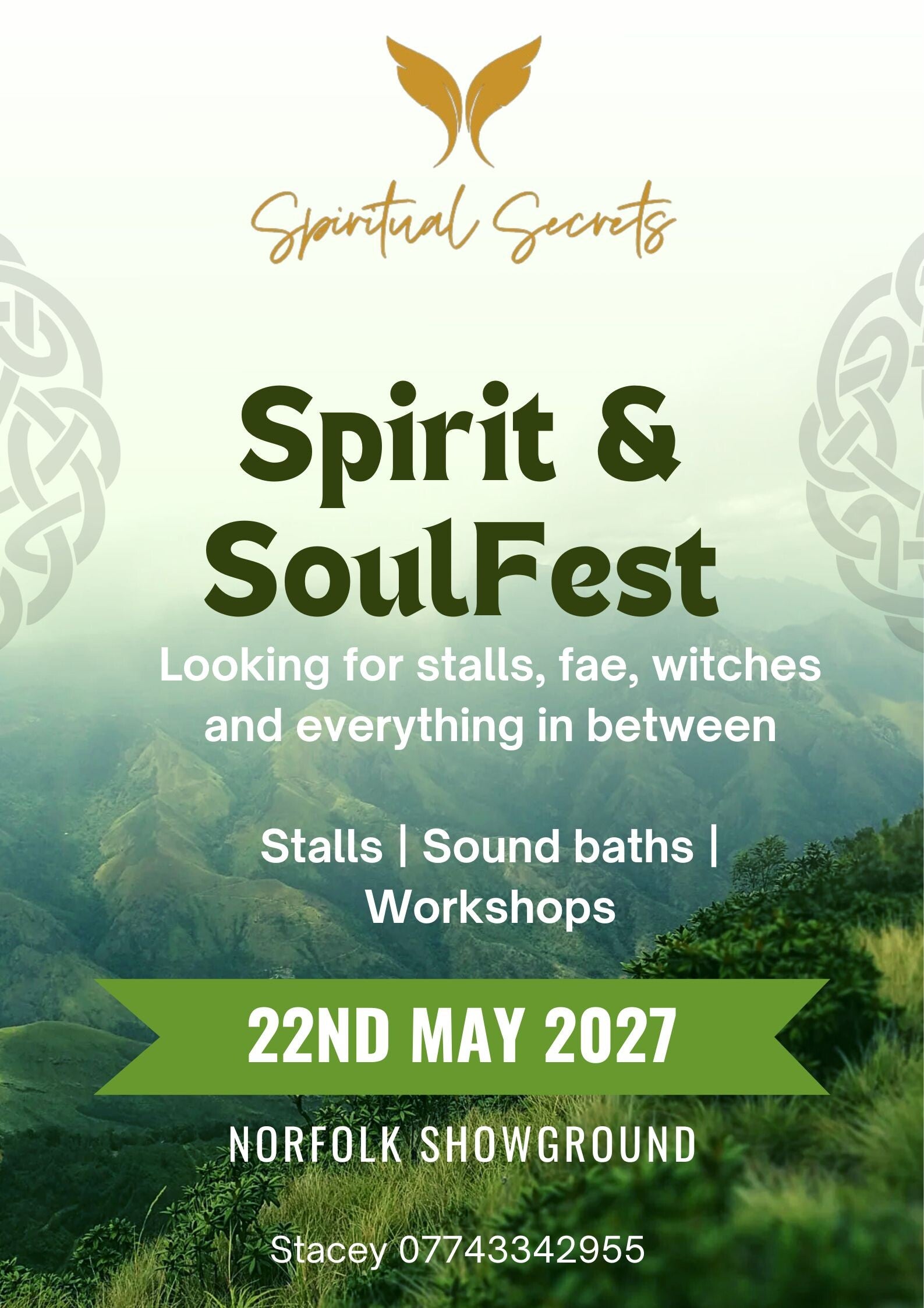 The news is out there. Spiritual Secrets is organising a festival at The Norfolk Showground on 22nd May 2027. What made me do this? Since running my fayre at Hemsby and other locations, the thought kept popping in my head to do an outdoor event. I kept putting it off, locking it away. Until 1 evening I was chatting to 1 of my stall holders about it, he then encouraged me very much to try. So I plucked up the courage and messaged the Showground, and here we are. Am I nervous? You bet I am. Am I going to put my all into this to make it work and a yearly event? You bet I am. We want to create a magical experience that people from all over come and rejuvenate their soul while connecting with like minded souls. A place for fun, memory making and somewhere you can forget your worries.
